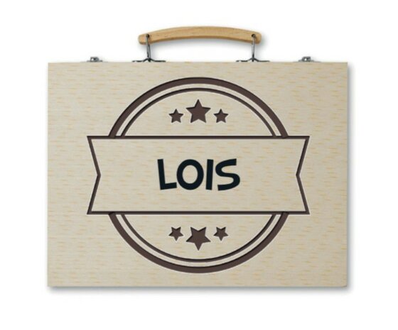 Personalisatie: hoogwaardige lasergravure met jouw persoonlijke boodschap op het deksel van de houten kist. De kleur van de lasergravure is bruin (houtkleur) en kan iets afwijken van de voorbeeldafbeelding.