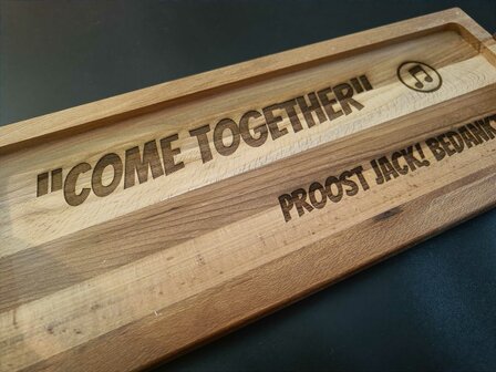 Om de plank een persoonlijk tintje te geven, kunt u ervoor kiezen om een eigen gravure toe te voegen. Of het nu uw initialen, een speciale datum of een gepersonaliseerde boodschap is, de gravure maakt de plank uniek en speciaal voor u. Het kan dienen als een perfect cadeau voor bruiloften, jubilea, housewarmings of andere speciale gelegenheden.
